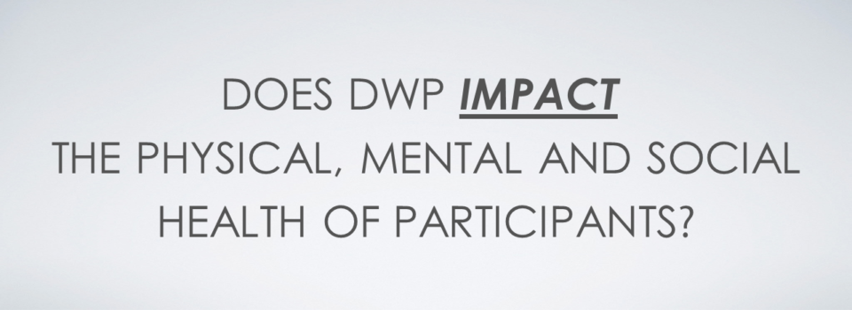 Uncovering mechanisms that explain what it is about DWP that works or how DWP activities lead to outcomes will provide a stronger contribution link between DWP and the observed outcomes. A sample of potential mechanisms of DWP include bringing people out of isolation, facilitating social connections, instilling confidence, strengthening hope and increasing a sense of freedom.